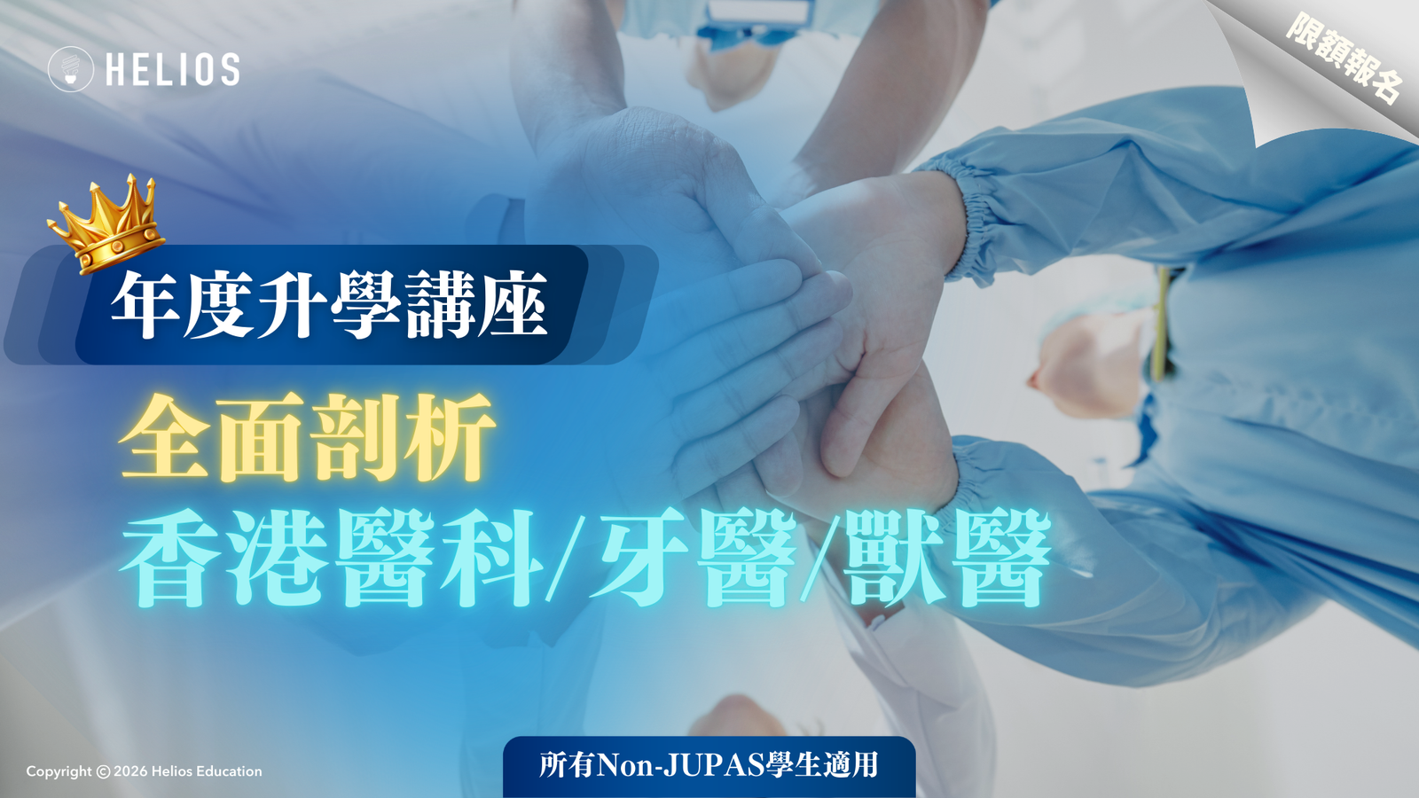 來到 2026年3月,Helios 續為有志在香港升讀醫科、牙醫或獸醫的學生及其家長舉辦專題講座「香港 Non-JUPAS 醫科/牙醫/獸醫升學」,毫不保留地分享相關科目所有的重意事項,以及升學貼士。